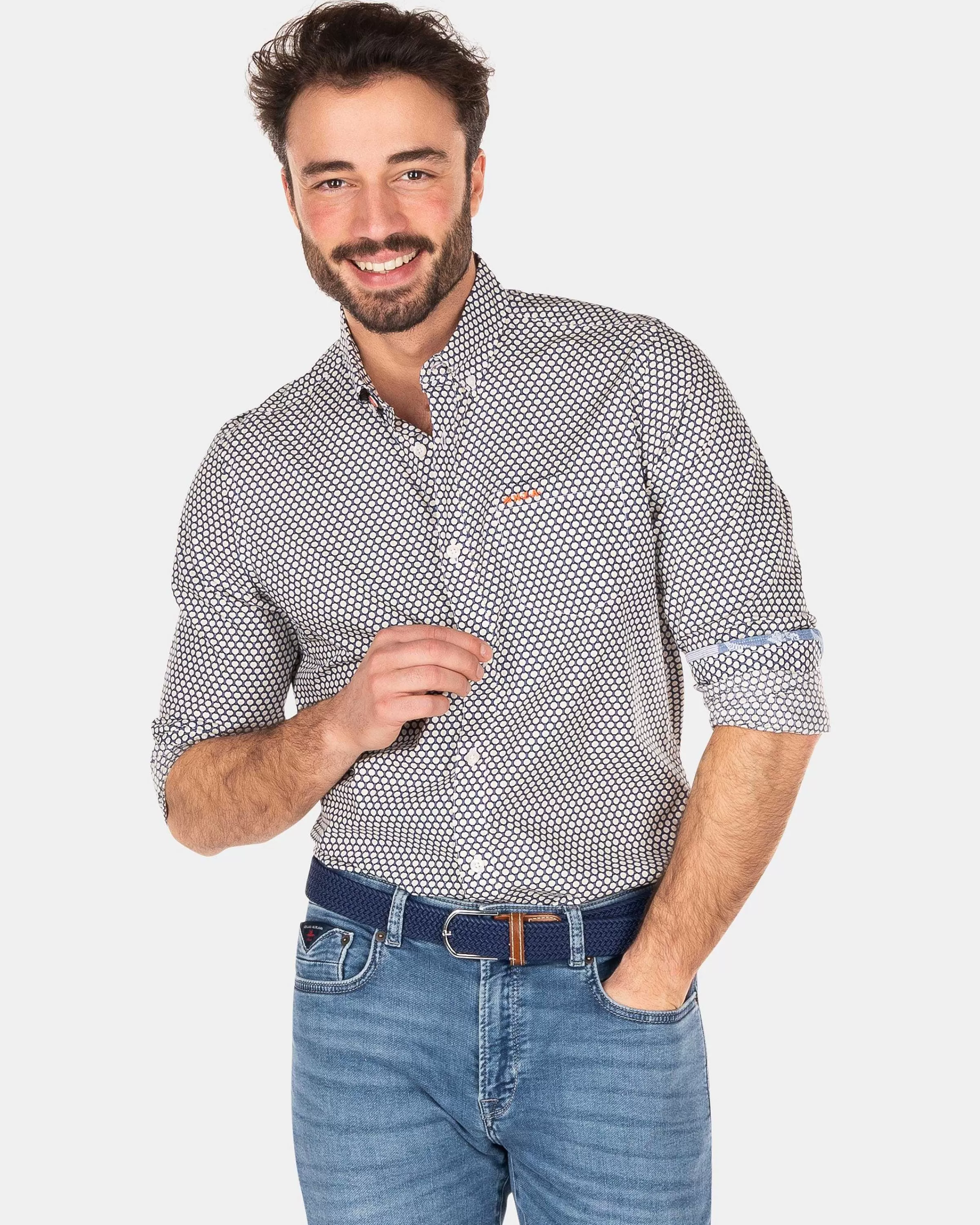 NZA New Zealand Auckland Overhemden | Katoenen Overhemd Met Stippen-Dusk Navy