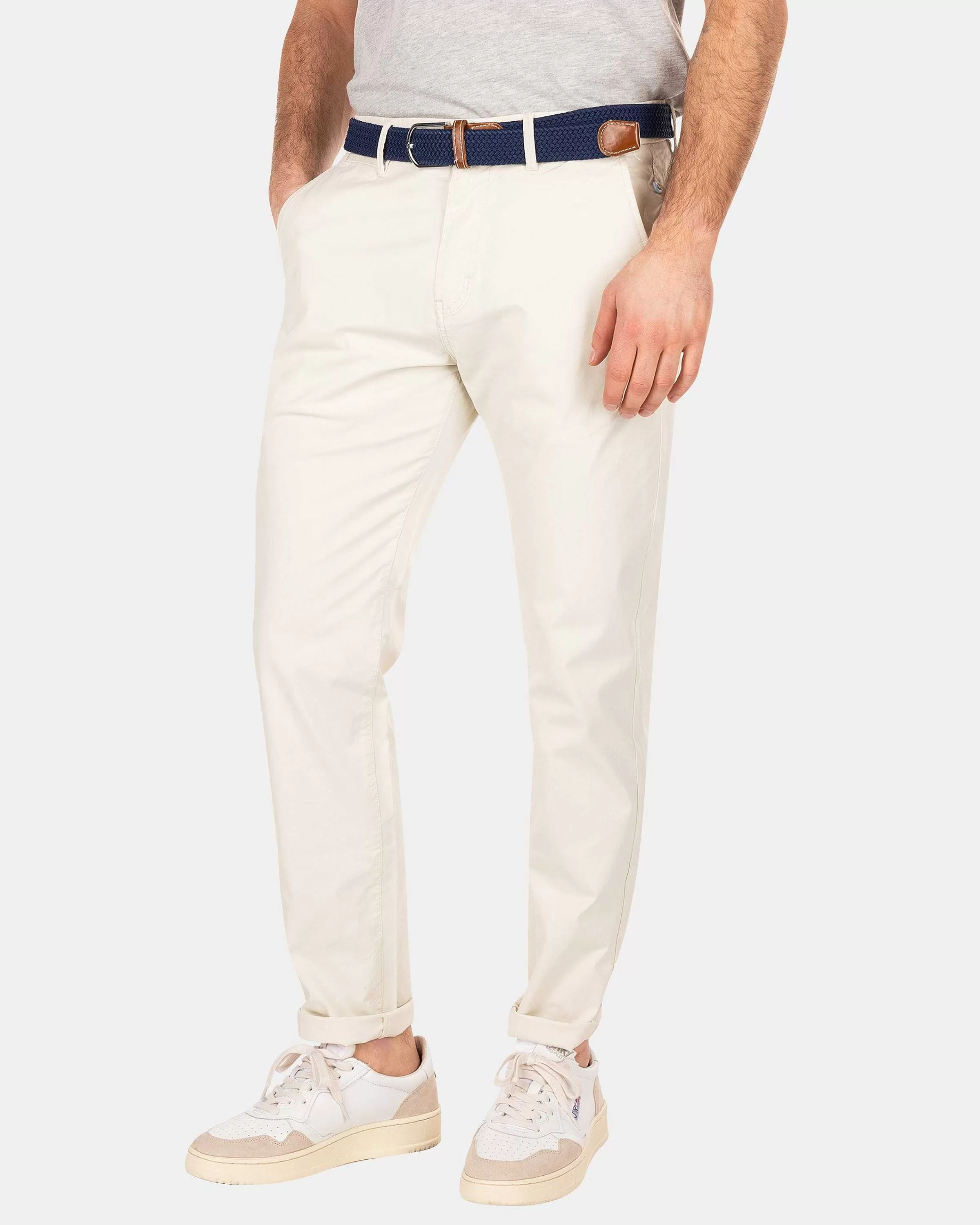 Katoenen Chino Met Stretch – CreamEen Nza New Zealand Auckland Man Zit Niet Vaak Stil. Daarom Is Het Belangrijk Dat Zijn…