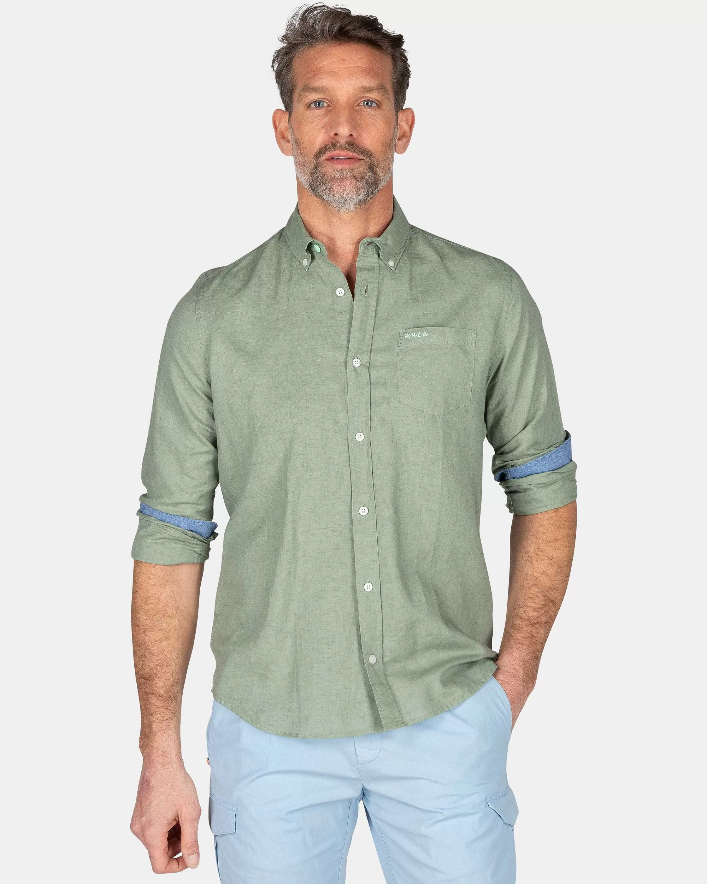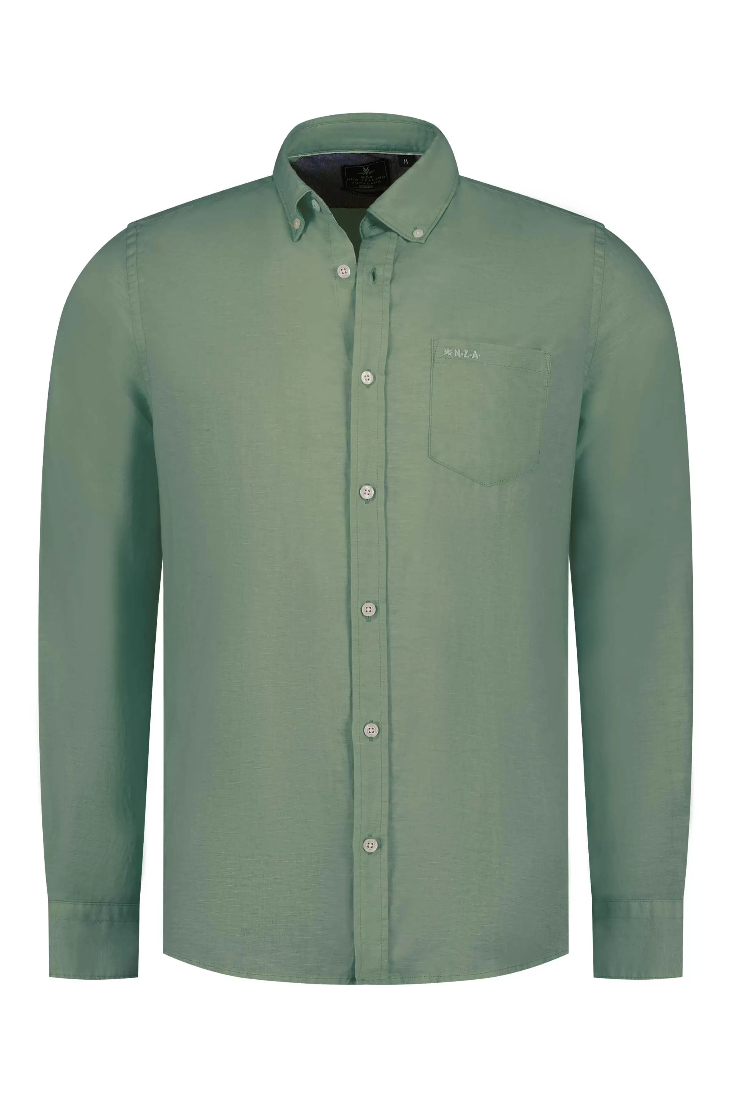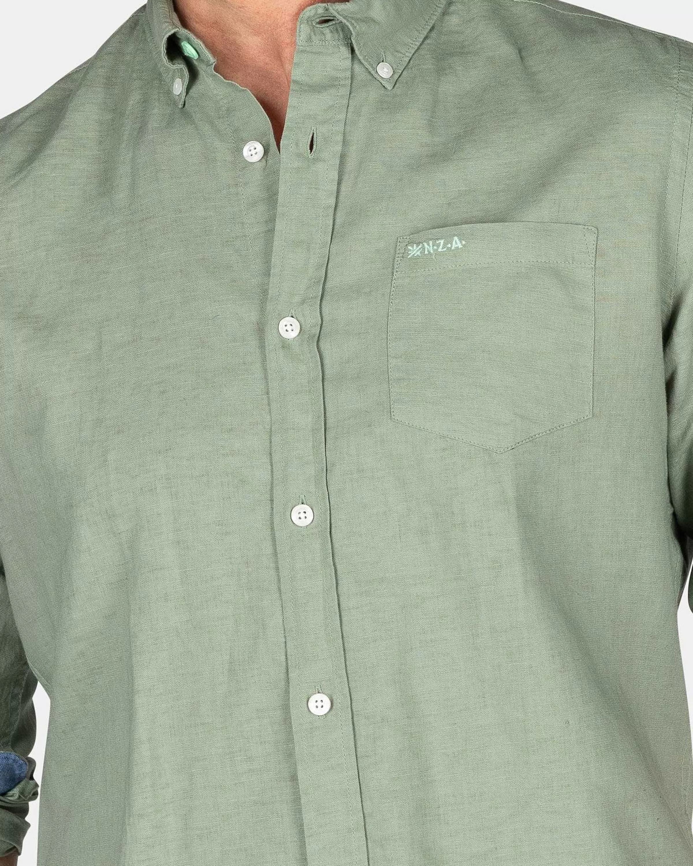 NZA New Zealand Auckland Overhemden | Effen Linnen Overhemd In Veel Kleuren-Mellow Army