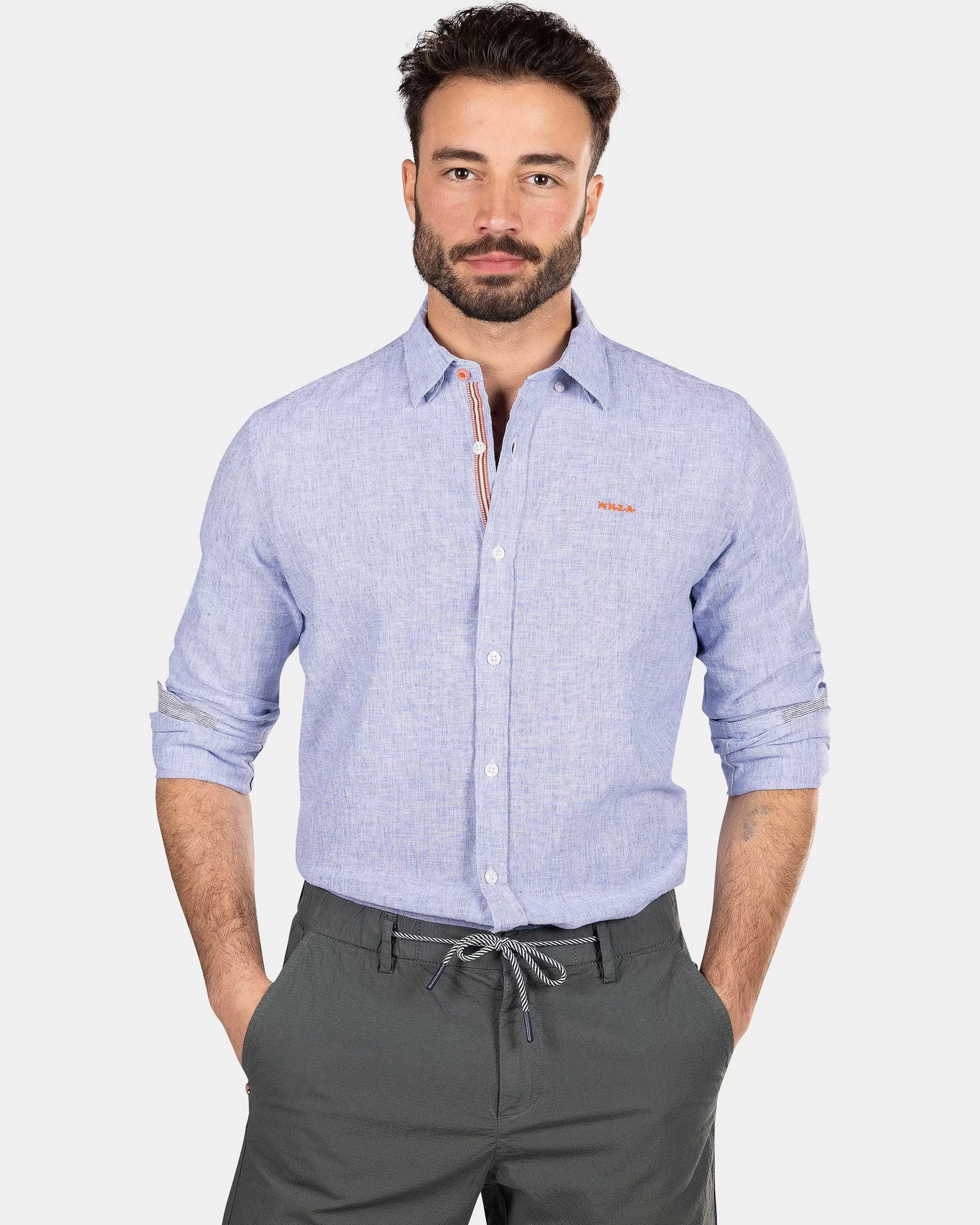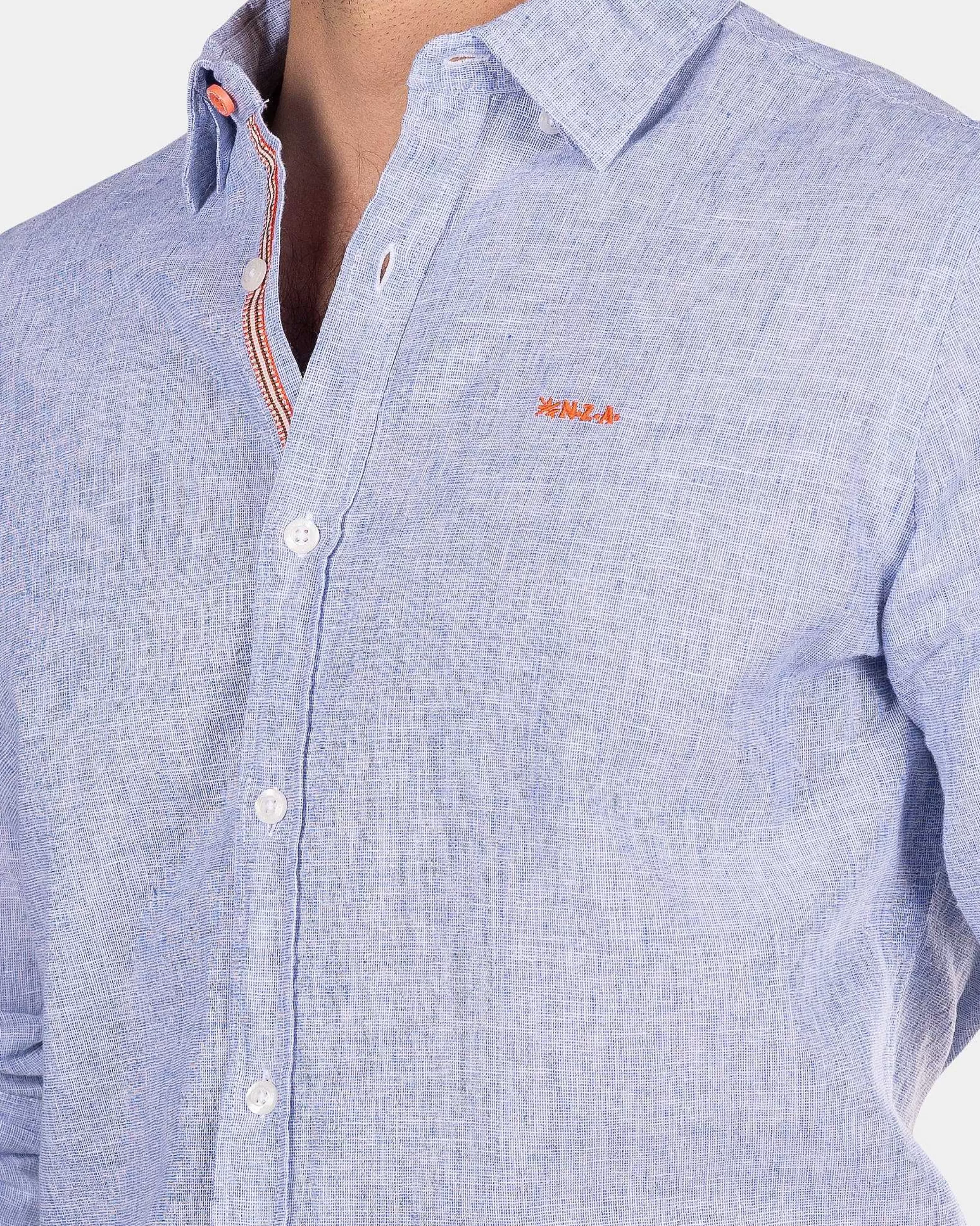 NZA New Zealand Auckland Overhemden | Effen Linnen Overhemd Met Lange Mouw-Dusk Navy