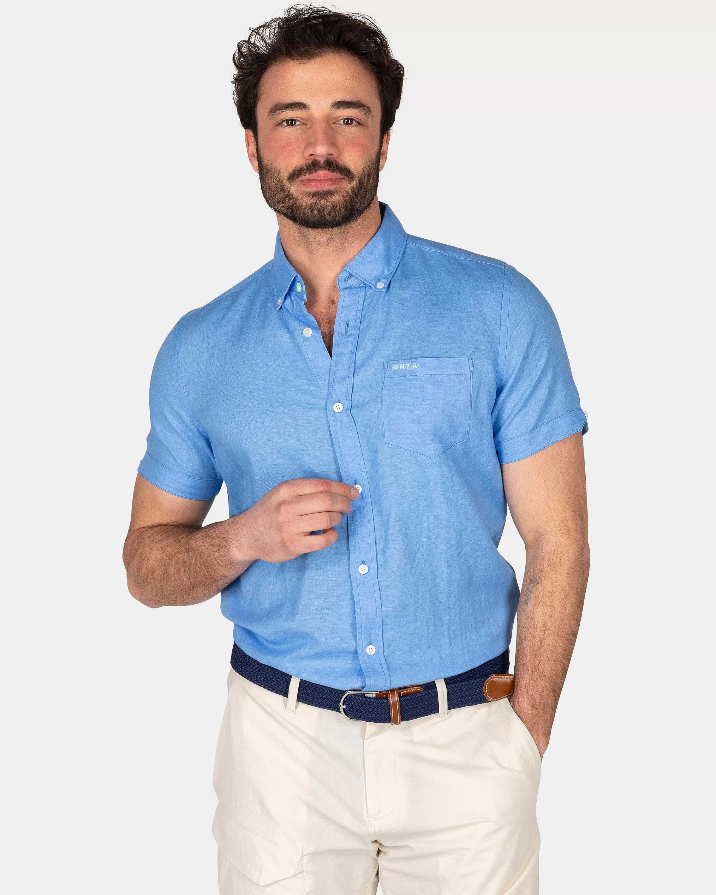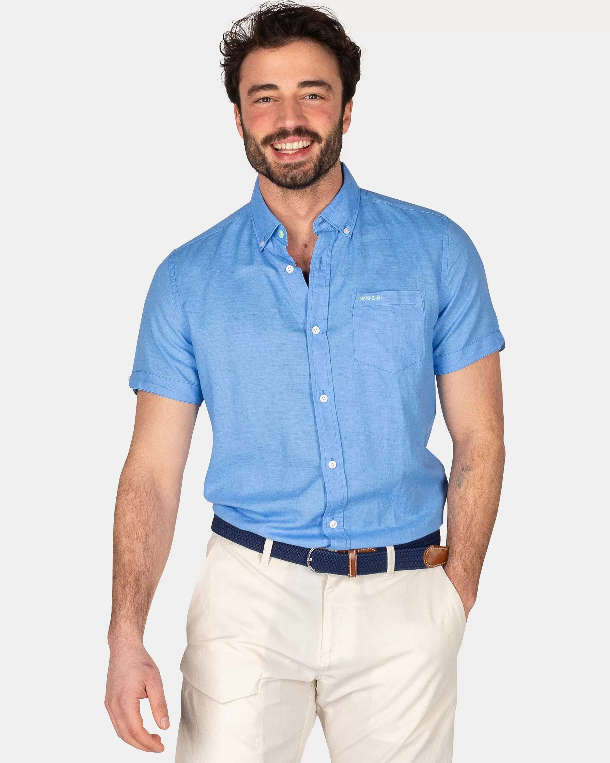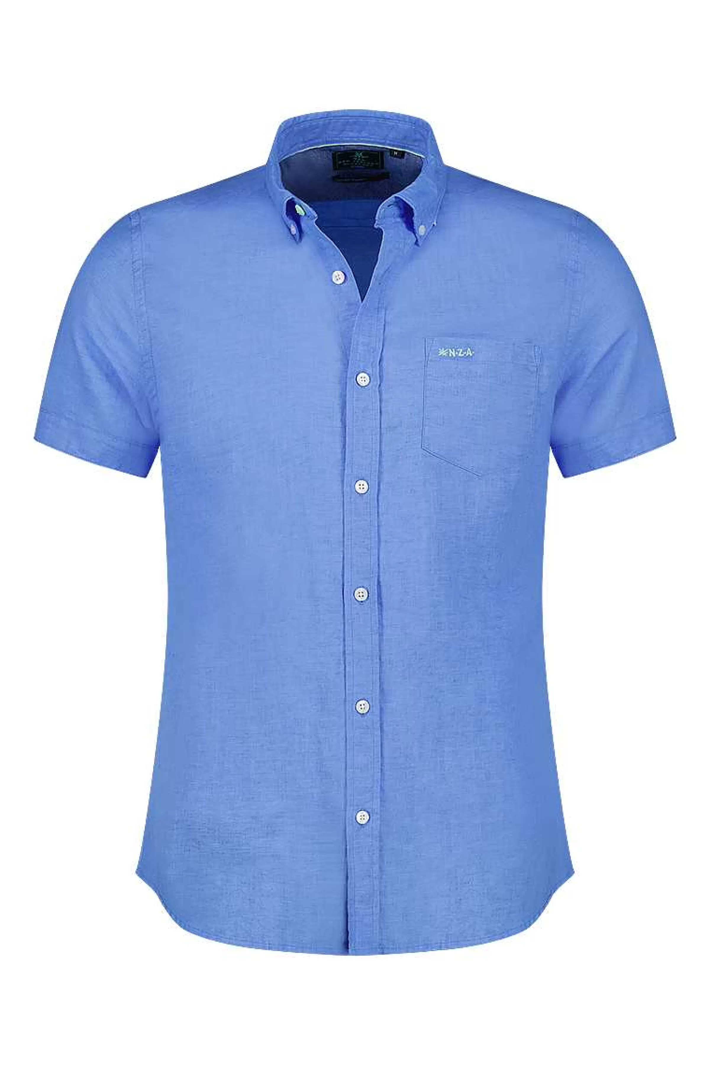 NZA New Zealand Auckland Overhemden | Effen Overhemd Korte Mouw-Bed Blue
