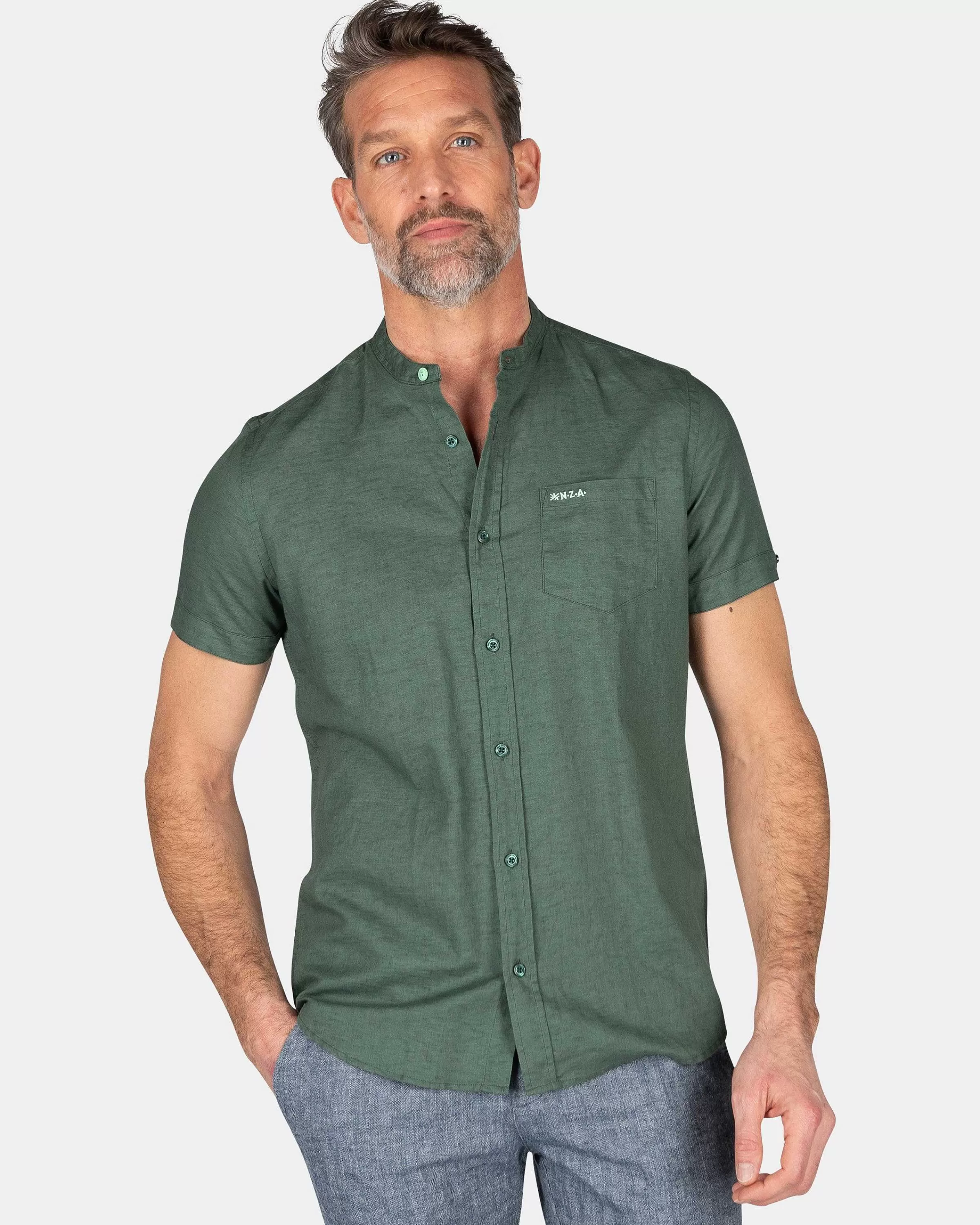 Effen Overhemd Korte Mouw – Chalk GreenDe Okarito Lijkt Een Basic Herenoverhemd Met Korte Mouwen. We Zouden Het Echter Niet Aan De Nza New Zealand Auckland Zomercollectie Kunnen Toevoegen Als We Niet Dat Tikkeltje Extra Pit Hadden Gegeven. Een Subtiel Accent Gekleurd Logo Op De Borstzak, Accentkleurige Details In De Halslijn En Een Comfortabele Linnen/Katoen Melange. We Durven Te Wedden Dat Je Dit Overhemd Elke Dag Wilt Dragen Dit Seizoen!Verkrijgbaar In Traditional Navy, Shimmering Sand, Dusk Navy, Rhythm Blue, Bed Blue, Mellow Army, Fury Pink, Chalk Green, Teal Green, White En Iguana Yellow