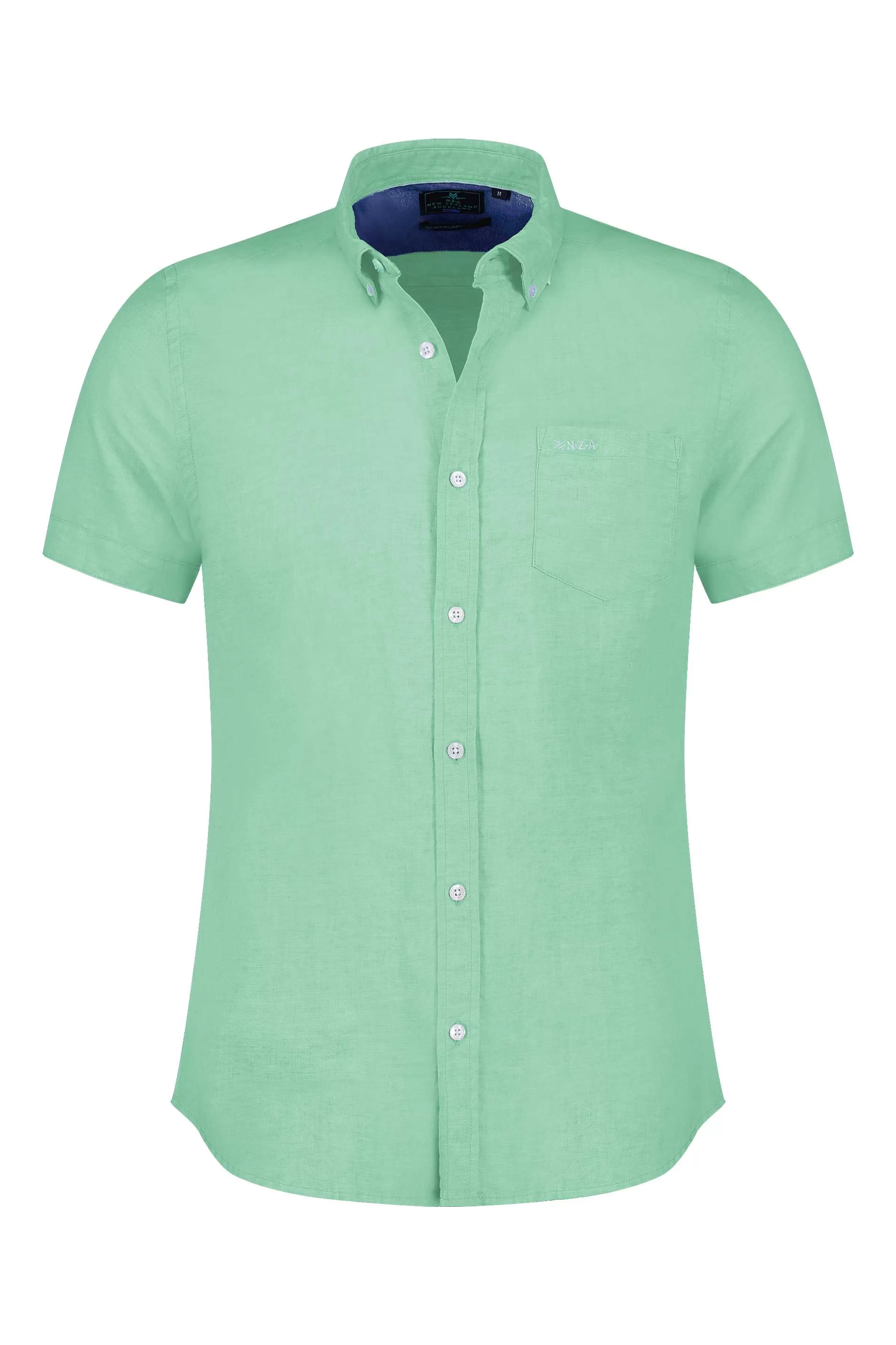 NZA New Zealand Auckland Overhemden | Effen Overhemd Korte Mouw-Teal Green