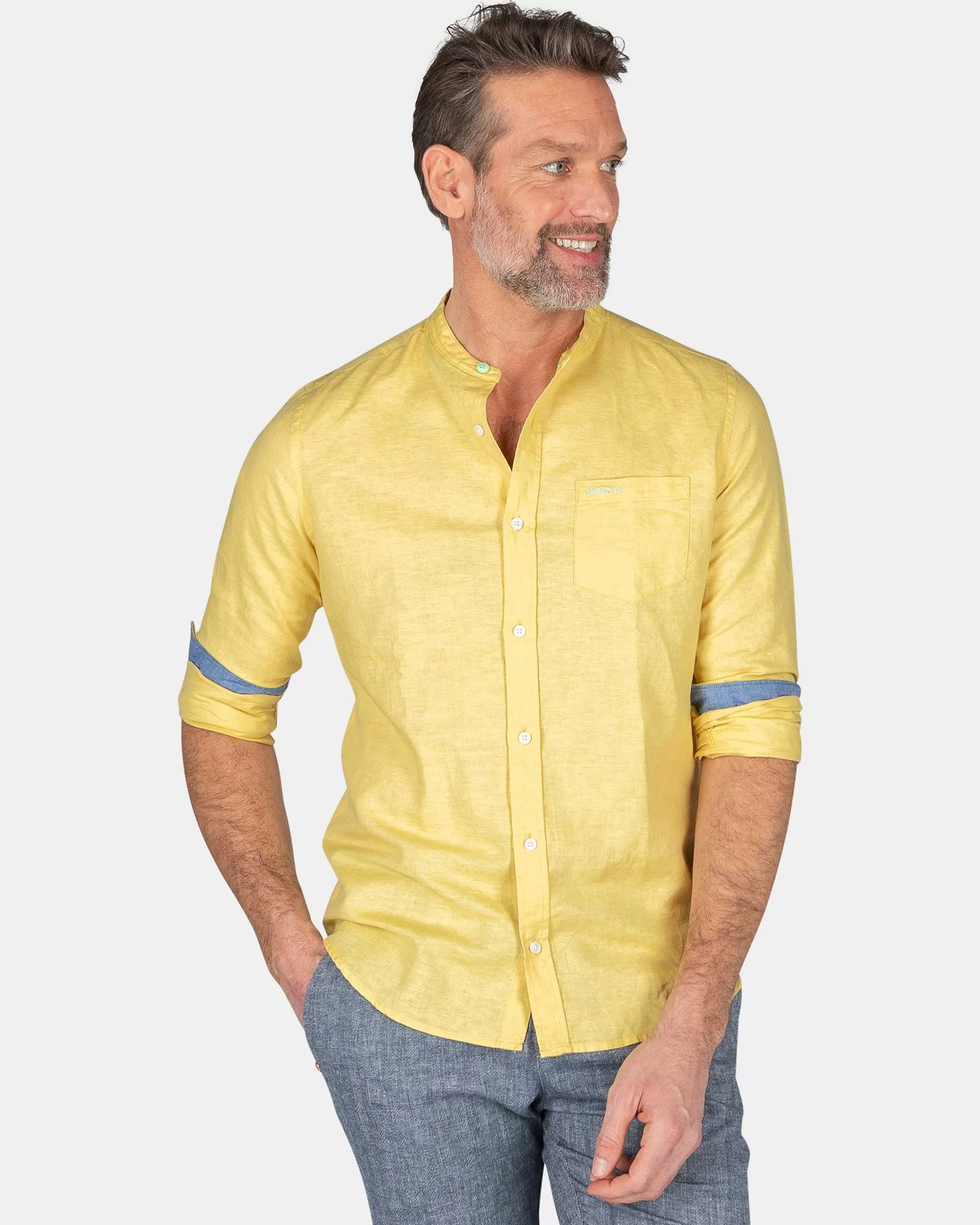 Effen Overhemd Zonder Kraag – Iguana YellowDe Zachte Wassing Van Onze Herenoverhemden Voegt Dat Kleine Beetje Extra Toe …