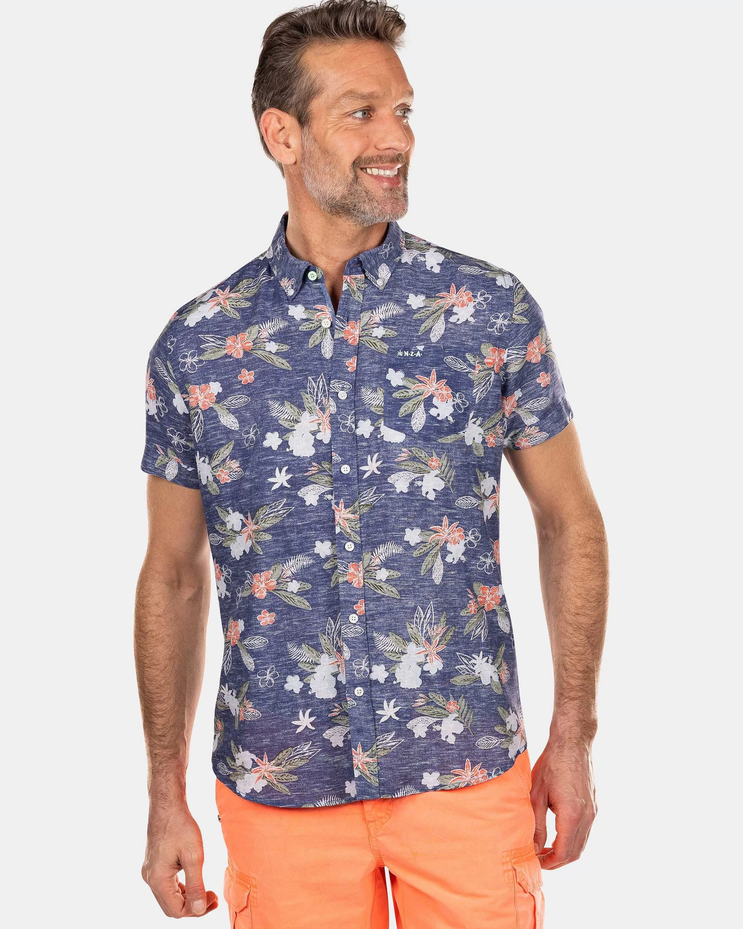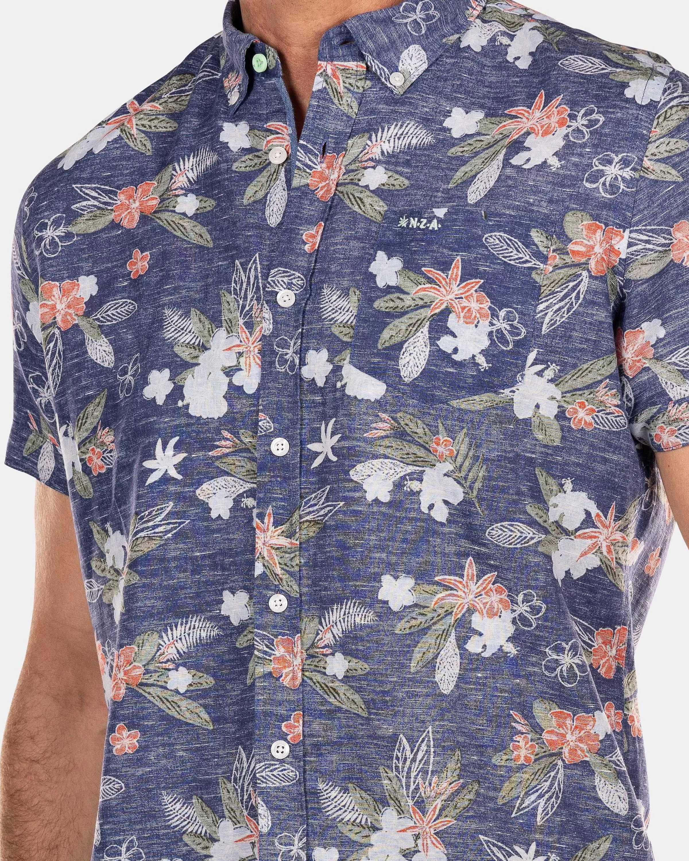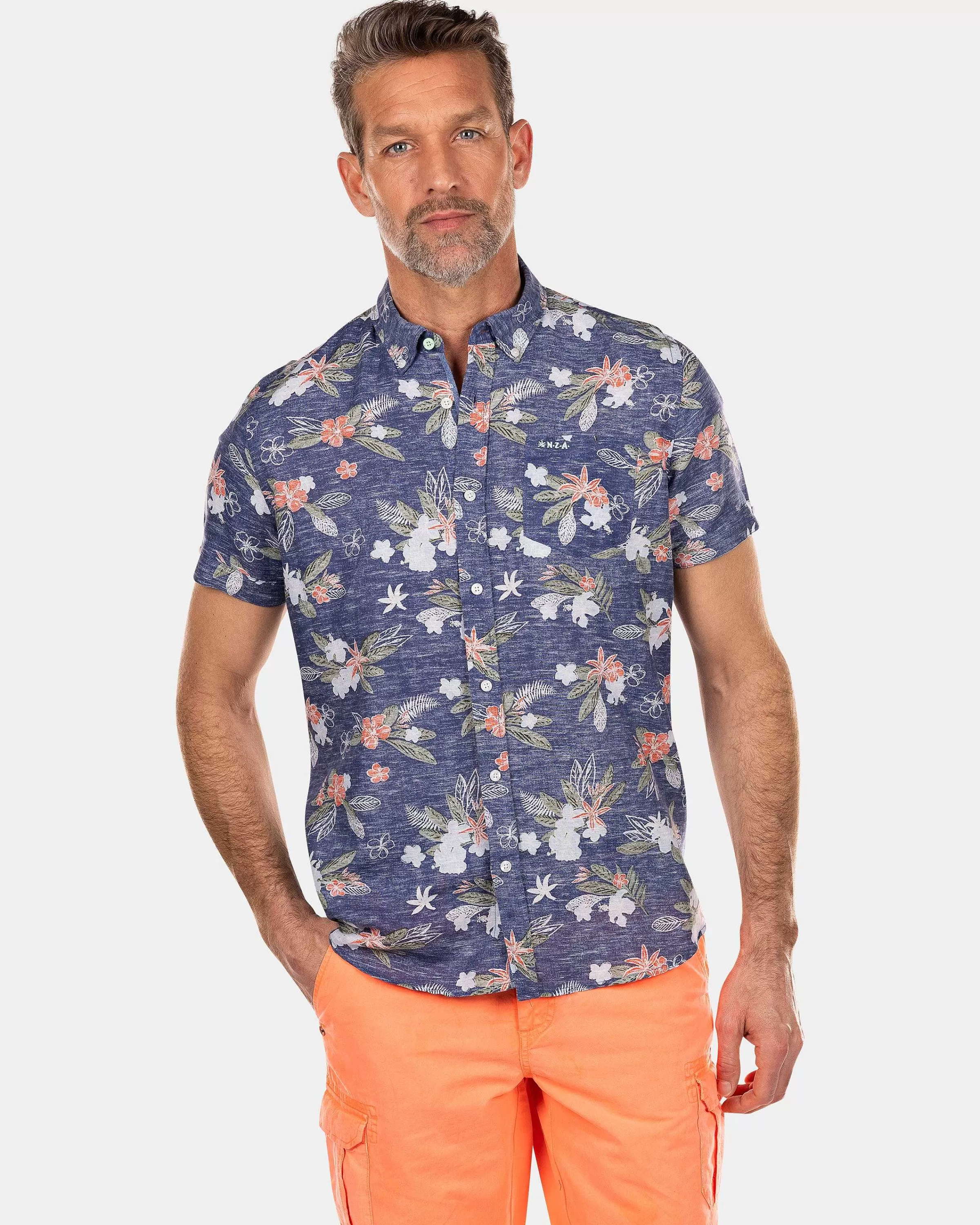 NZA New Zealand Auckland Overhemden | Gebloemd Overhemd Met Korte Mouw-Dusk Navy