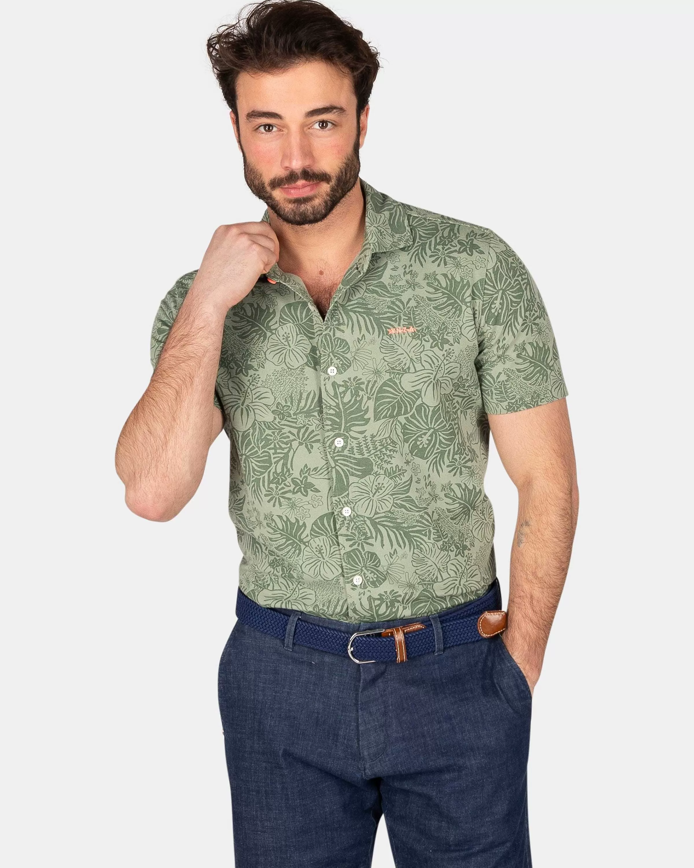 Groen Overhemd Met Korte Mouw – Mellow ArmyDe All-Over Print Op De Ohuri Is Geinspireerd Op De Maori En Geeft Het Overhemd Een Instant Speciaal Gevoel. Tel Daar De Perfecte Snit, De Comfortabele Katoen/Polyester Blend En De Garment Wassing Bij Op, En Je Heb Het Perfecte Shirt Voor Dit Seizoen. Geen Wonder Dat De Ohuri Een Echte Nza New Zealand Auckland Favoriet Is. Ben Jij Er Klaar Voor?Verkrijgbaar In Mellow Army