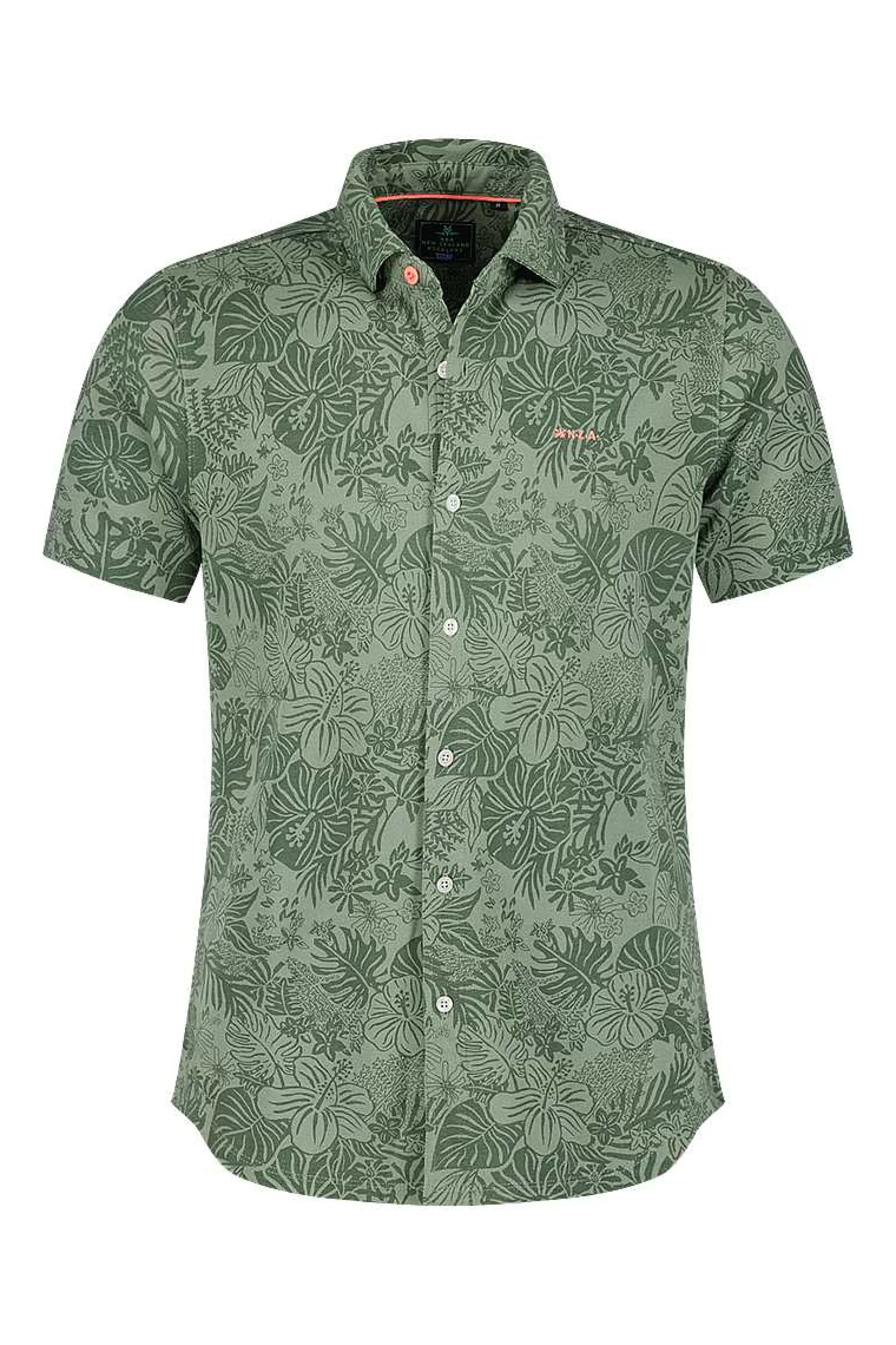 NZA New Zealand Auckland Overhemden | Groen Overhemd Met Korte Mouw-Mellow Army