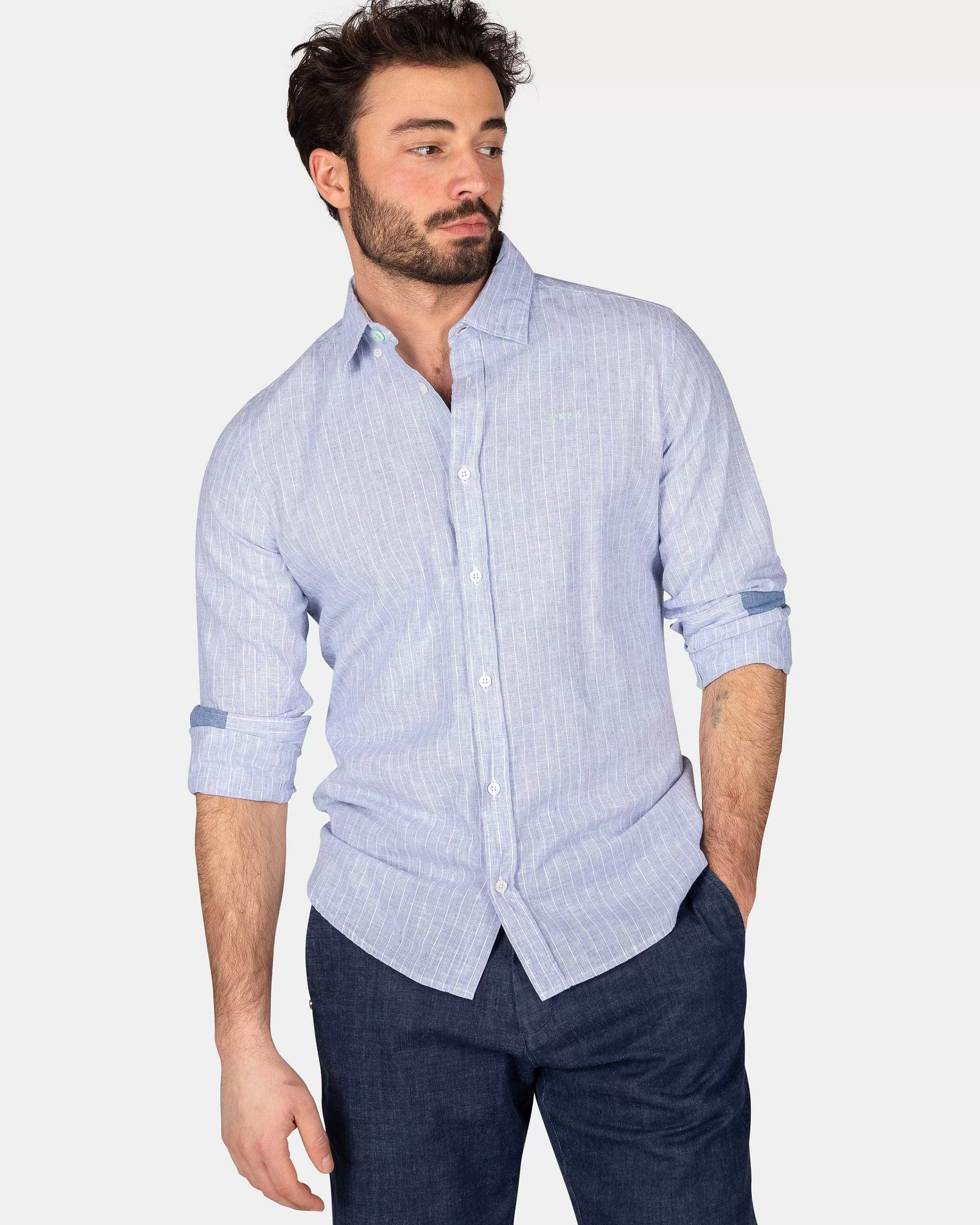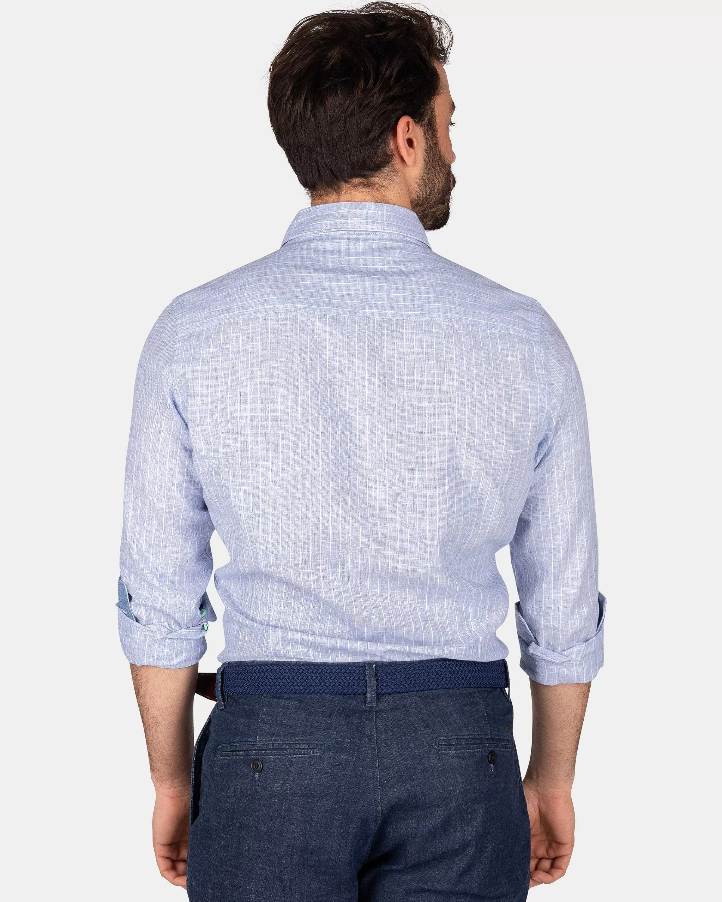 Lichtblauw Linnen Overhemd – Dusk NavyDe Garenverfstreep Op De Okuti Geeft Dit Herenoverhemd Een Licht Verweerde Look. D…