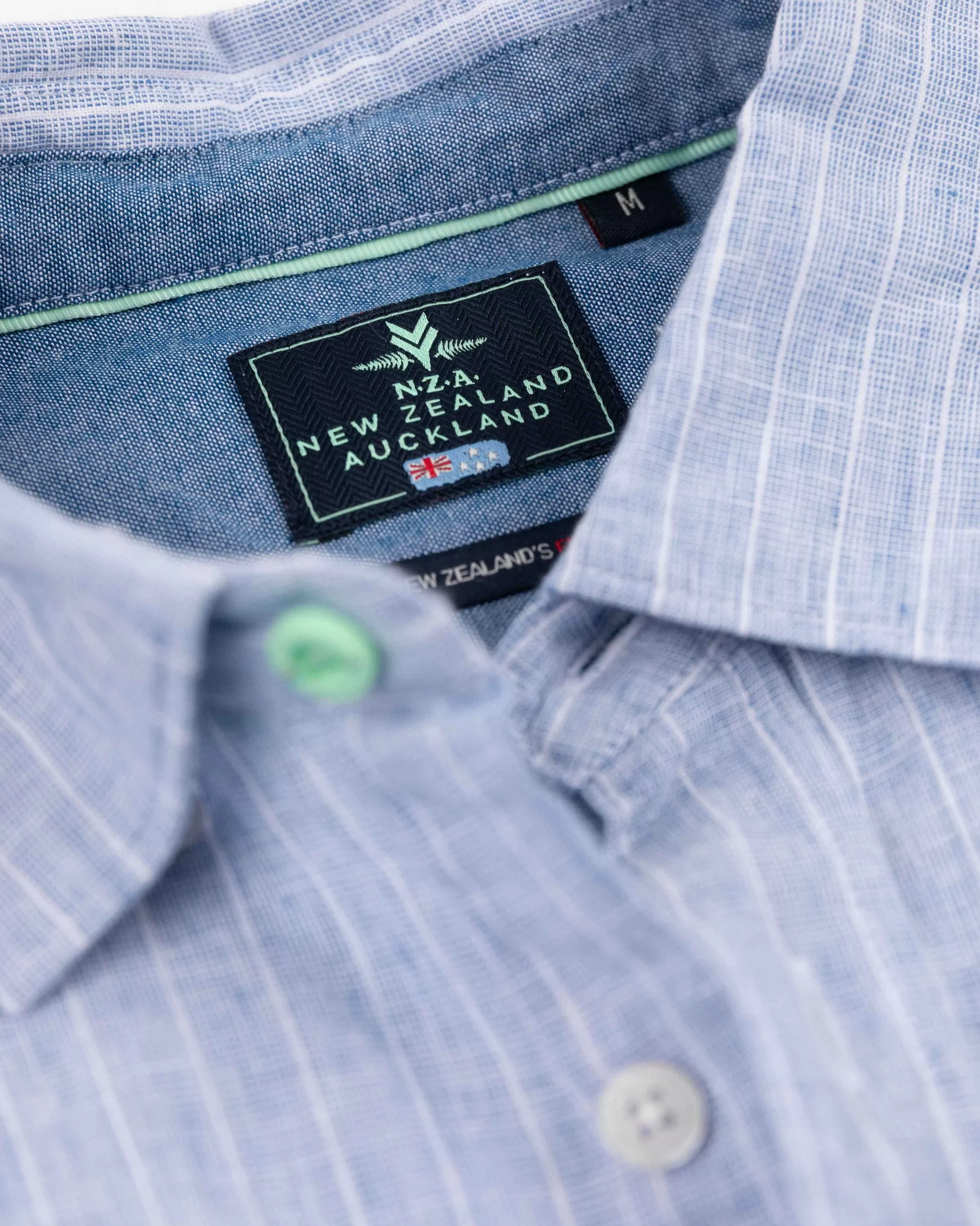 NZA New Zealand Auckland Overhemden | Lichtblauw Linnen Overhemd-Dusk Navy