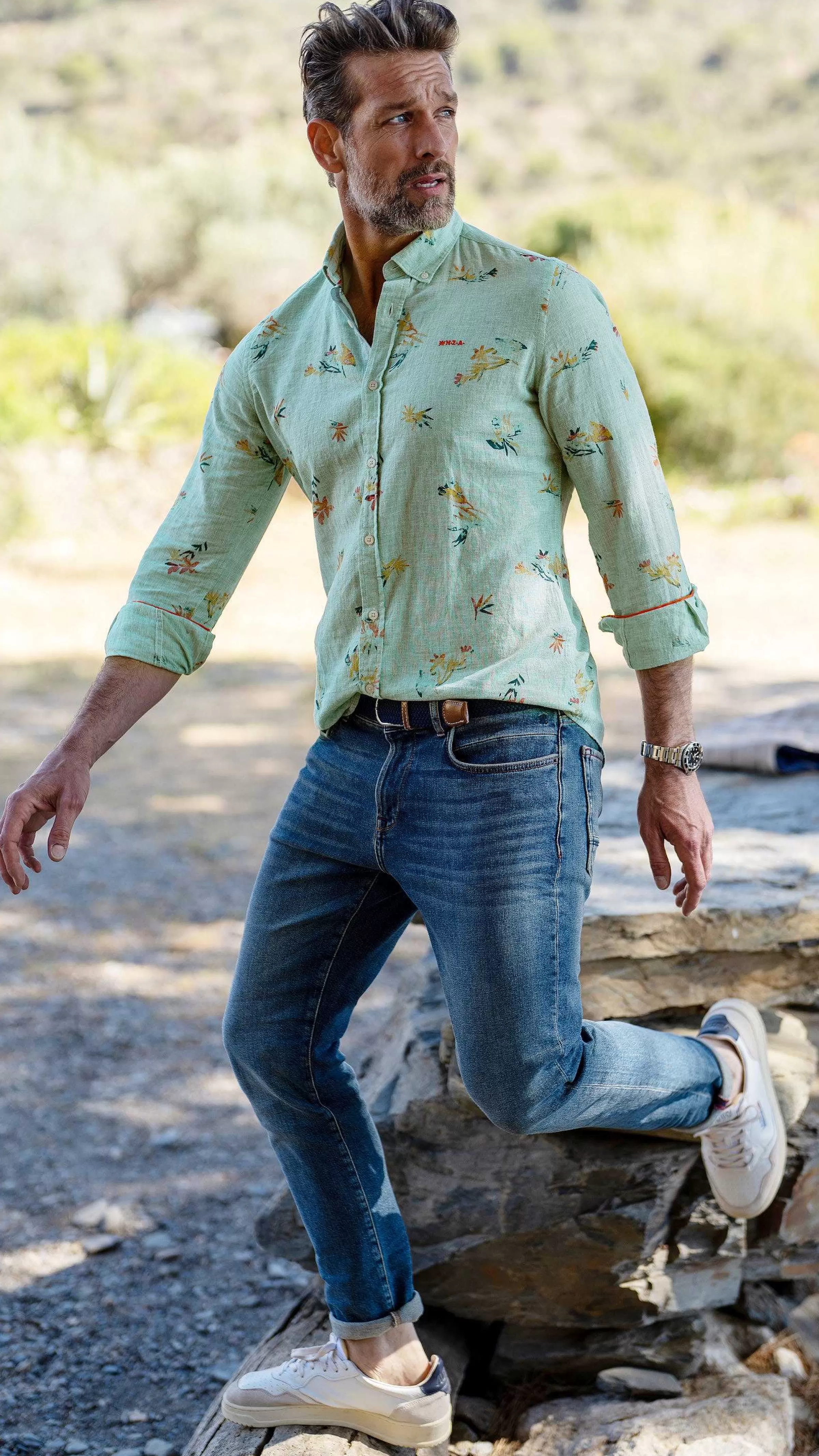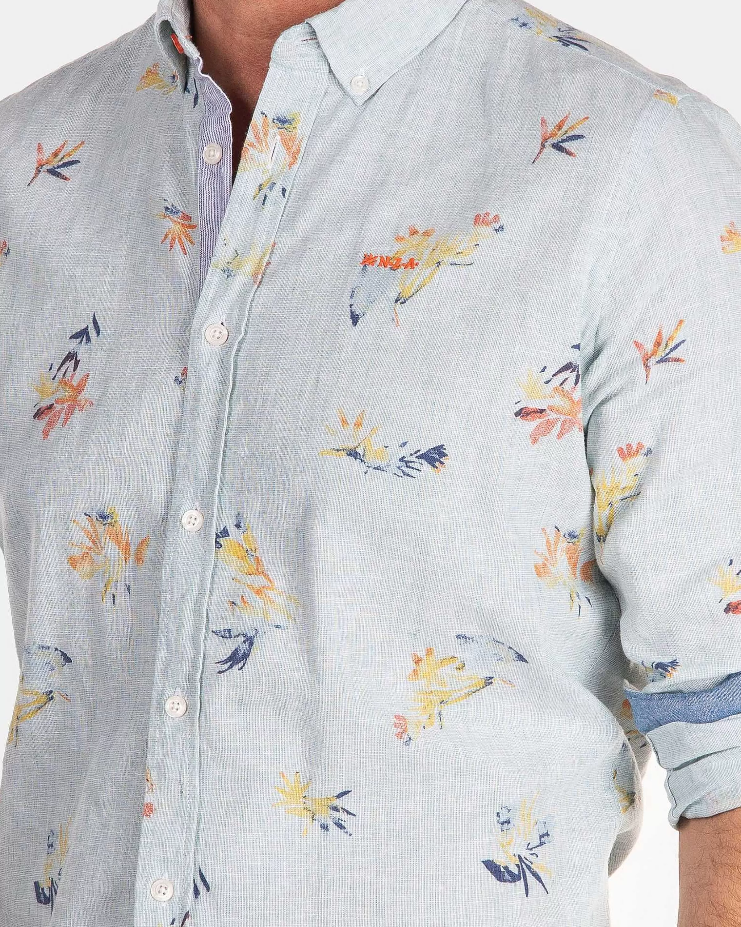 NZA New Zealand Auckland Overhemden | Linnen Overhemd Met Bloemenprint-Amazon Green