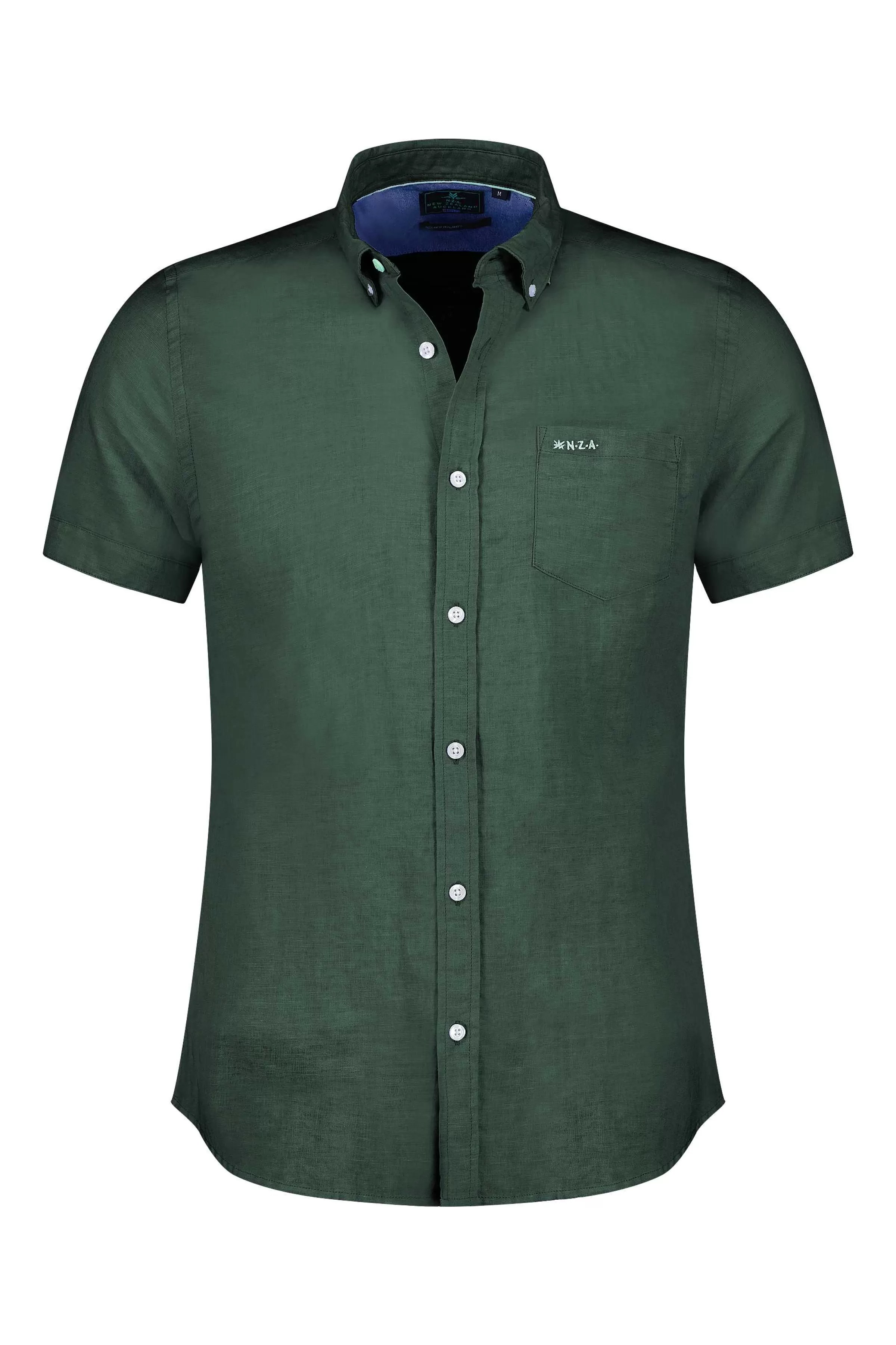 NZA New Zealand Auckland Overhemden | Overhemd Zonder Kraag Met Korte Mouw-Chalk Green