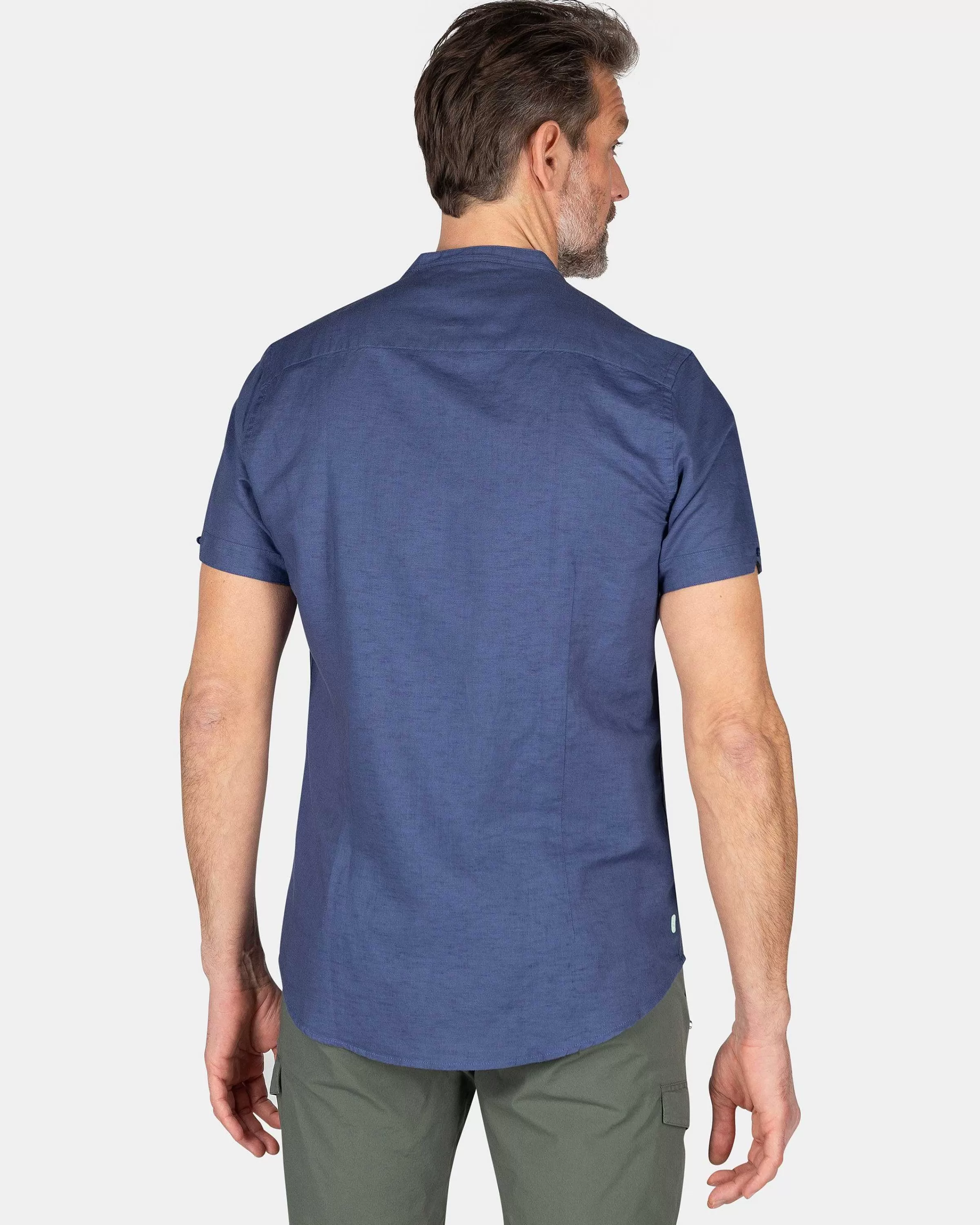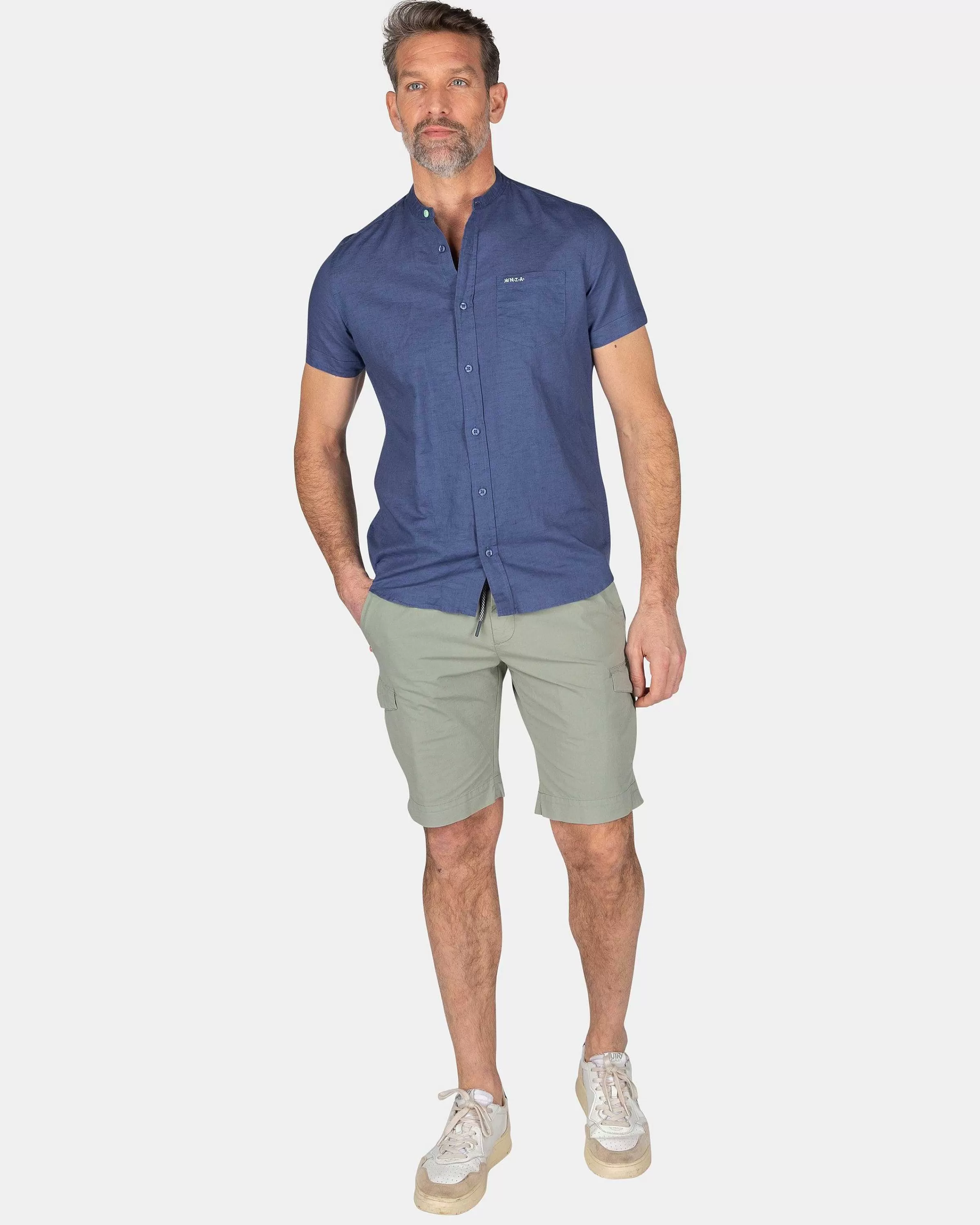 NZA New Zealand Auckland Overhemden | Overhemd Zonder Kraag Met Korte Mouw-Dusk Navy