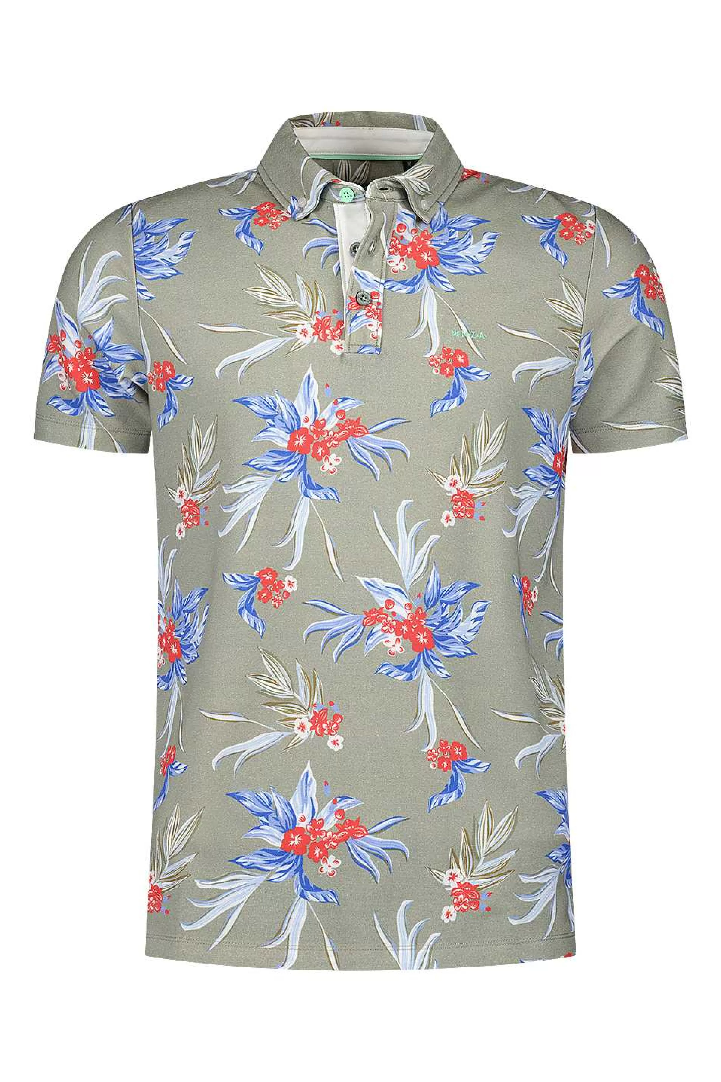 NZA New Zealand Auckland Polo-Shirts | Groene Polo Met Bloemenprint-Misty Army