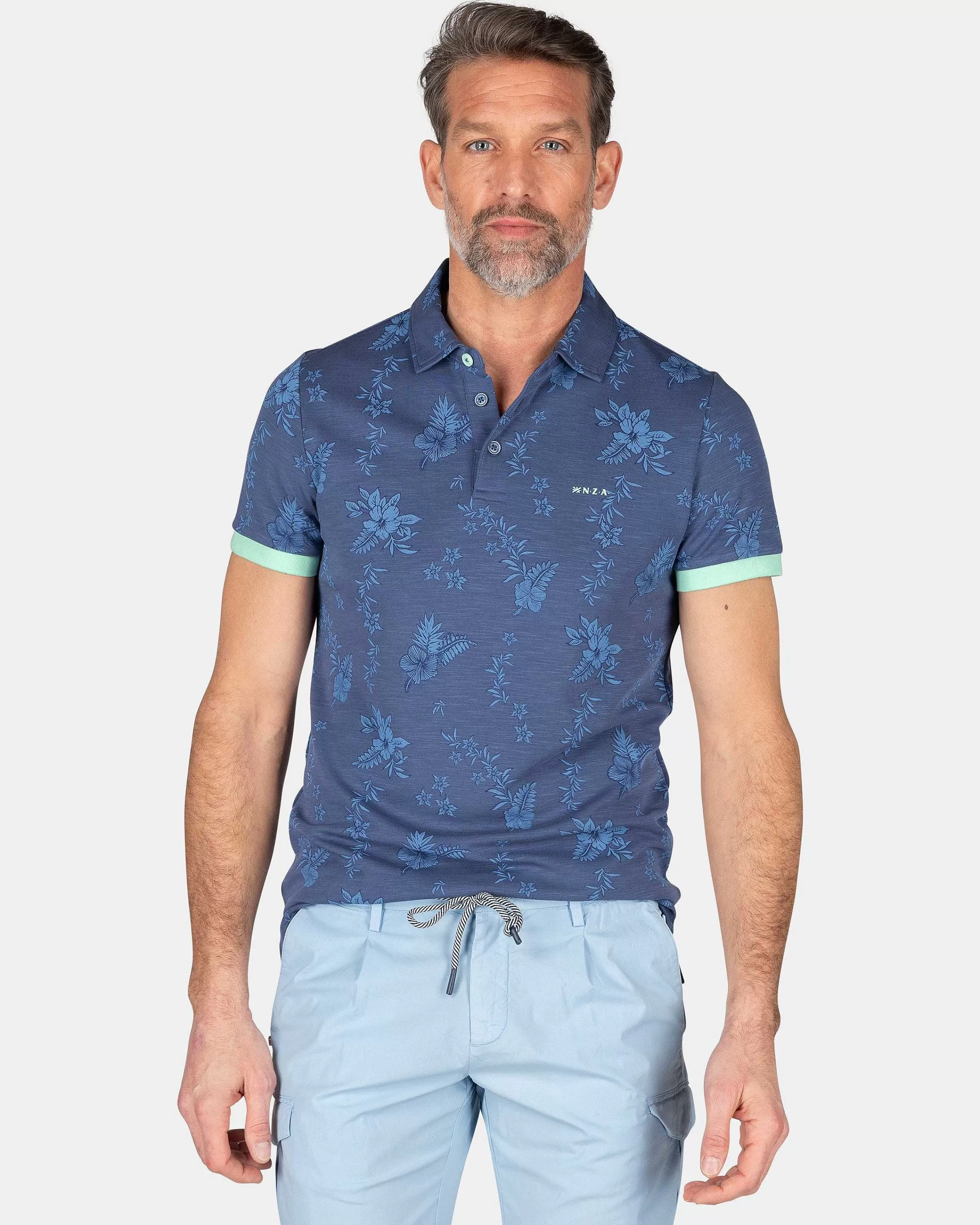 NZA New Zealand Auckland Polo-Shirts | Navy Polo Met Bloemen-Dusk Navy