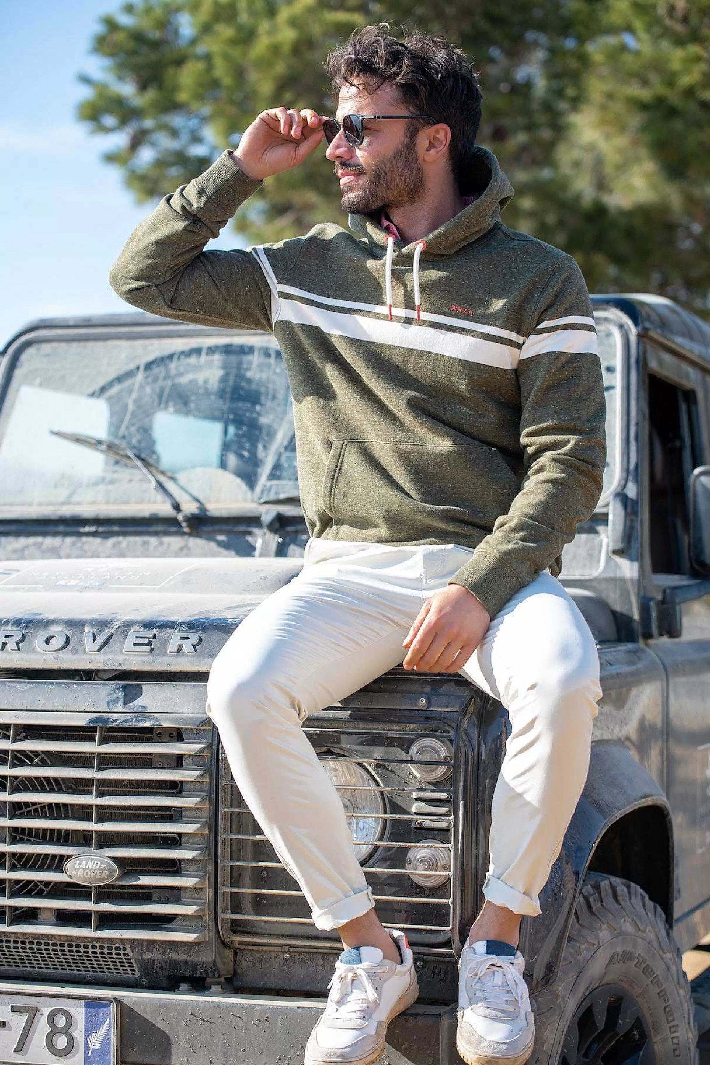 NZA New Zealand Auckland Sweats | Groene Hoodie Met Witte Streep-Jacket Army