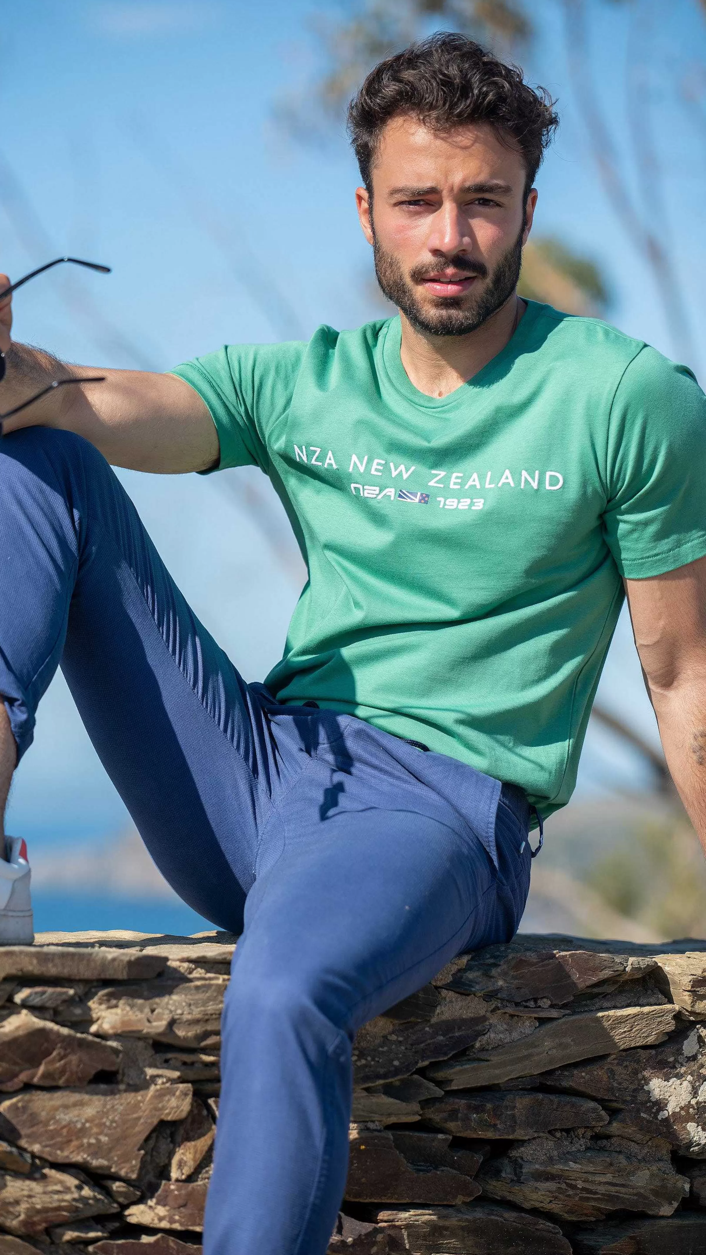 NZA New Zealand Auckland T-Shirts | Katoenen T-Shirt Met Logo-Amazon Green
