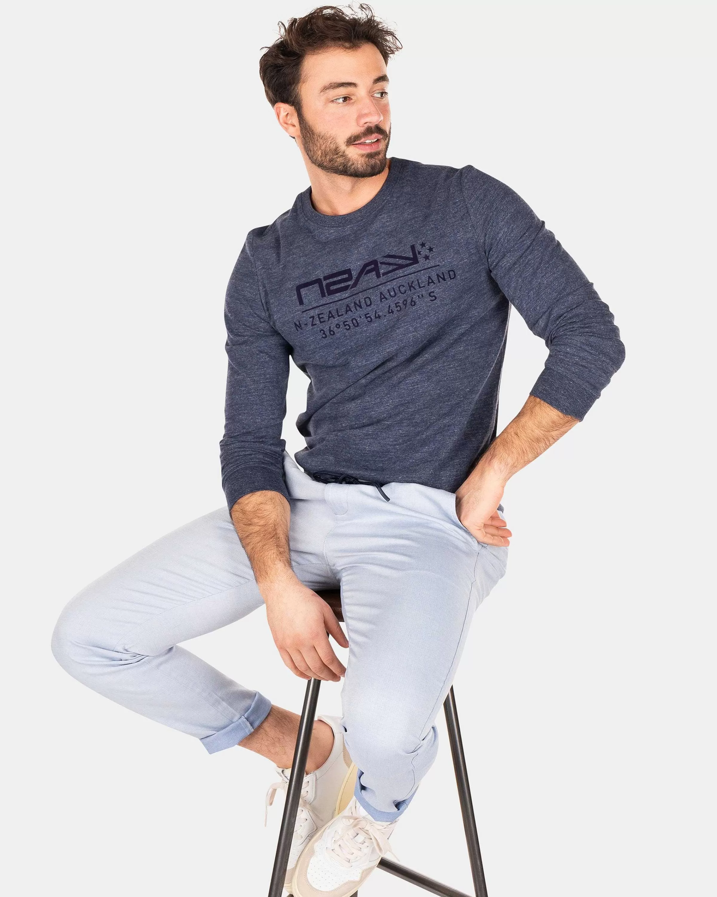 Longsleeve Met Ronde Hals – Traditional NavyVoor Die Koude Lenteochtenden, Regenachtige Fietstochten Of Casual Friday’S: De Pinders Pond Kan Voor Elke Gelegenheid Uit Je Kast Worden Getrokken. Look Sharp En Feel Casual, Dat Is De Perfecte Combinatie Die Iedereen Zoekt In Een Heren T-Shirt Met Lange Mouwen. En Hier Heb Je Het. De Nza New Zealand Auckland Pinders Pond Voldoet Aan Elke Verwachting.Verkrijgbaar In Traditional Navy En Shimmering Sand