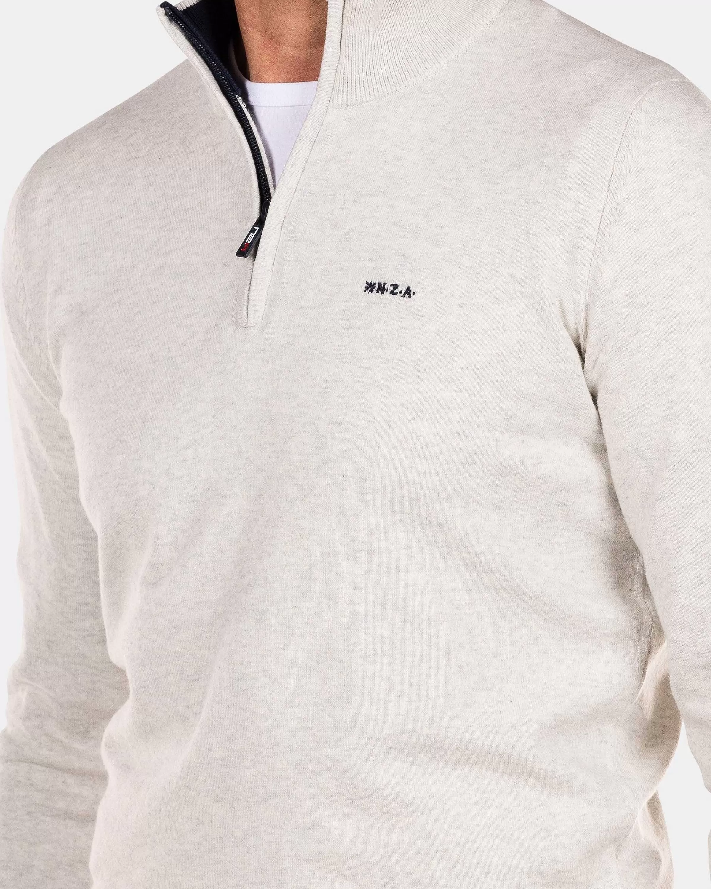 NZA New Zealand Auckland Truien | Effen Sweater Met Rits-Cream Melange